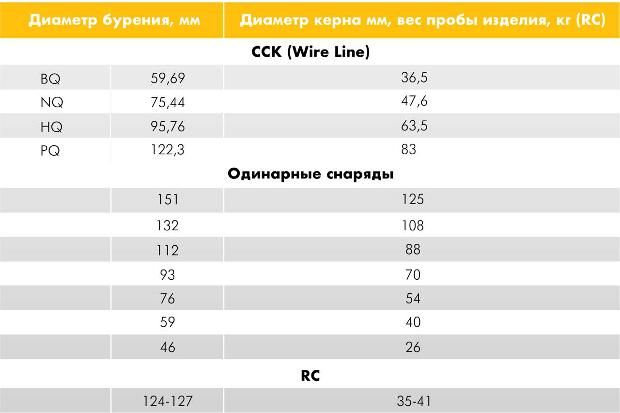Алмазное бурение с промывочной жидкостью комплексами ССК диаметрами: